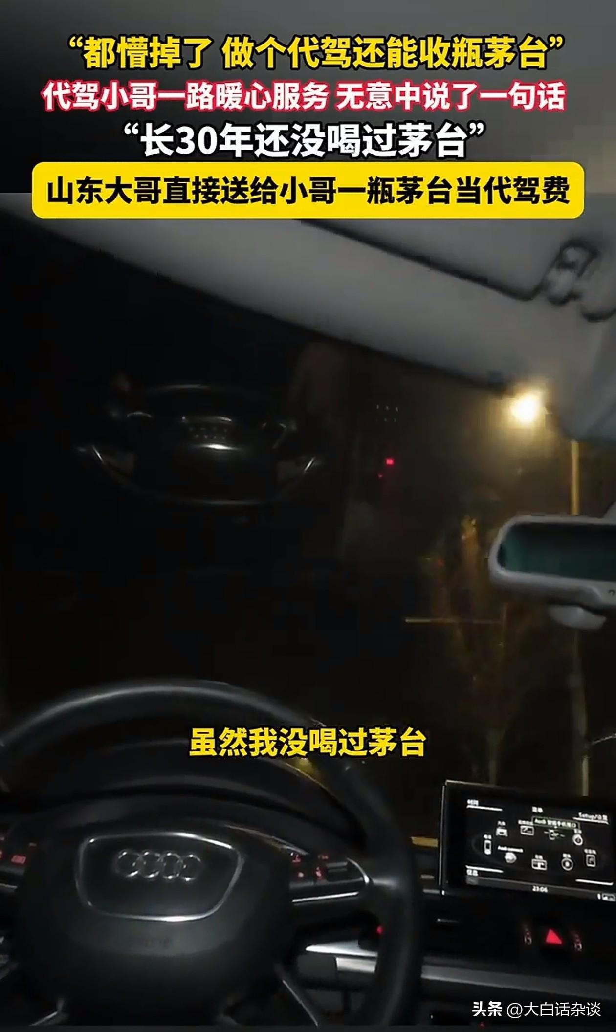 20多块钱的代驾费用,车主却非要给代驾员送一瓶茅台酒,这事听起来像段子,但却真实的发生了,那么这背后到底隐藏着什么样的故事呢?